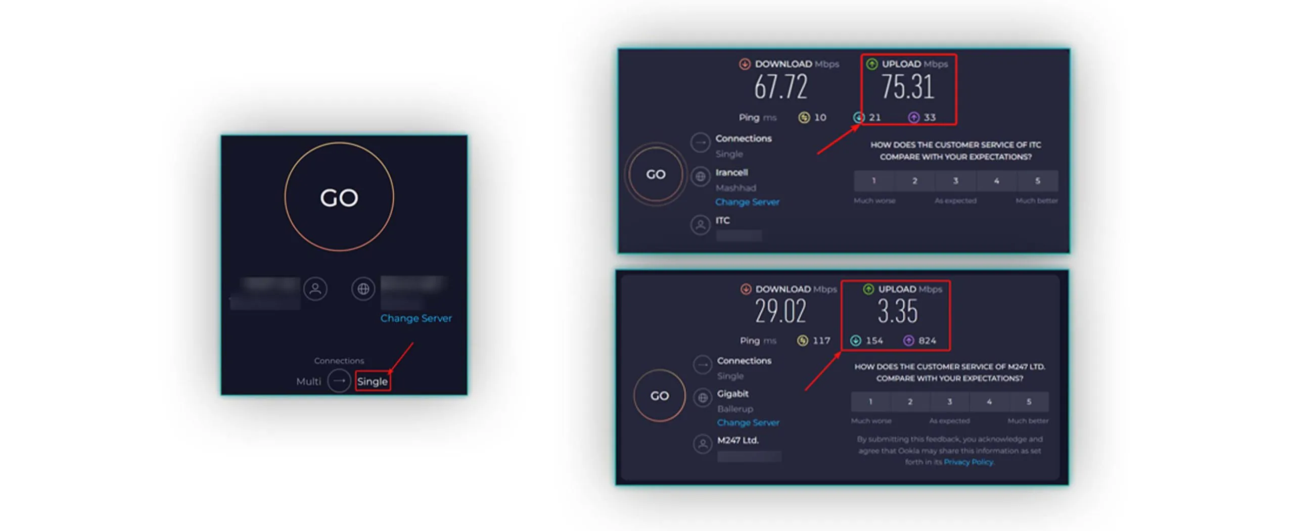 ابزارهای مختلفی مانند Speedtest وجود دارند که به شما امکان میدهند سرعت دانلود و آپلود اینترنت خود را اندازه بگیرید. برای استریم با کیفیت Full HD، حداقل سرعت آپلود باید 5 مگابیت در ثانیه باشد. اگر قصد دارید استریمهای با کیفیت 4K انجام دهید، به سرعت آپلود بالاتری (حدود 25 مگابیت در ثانیه) نیاز دارید.