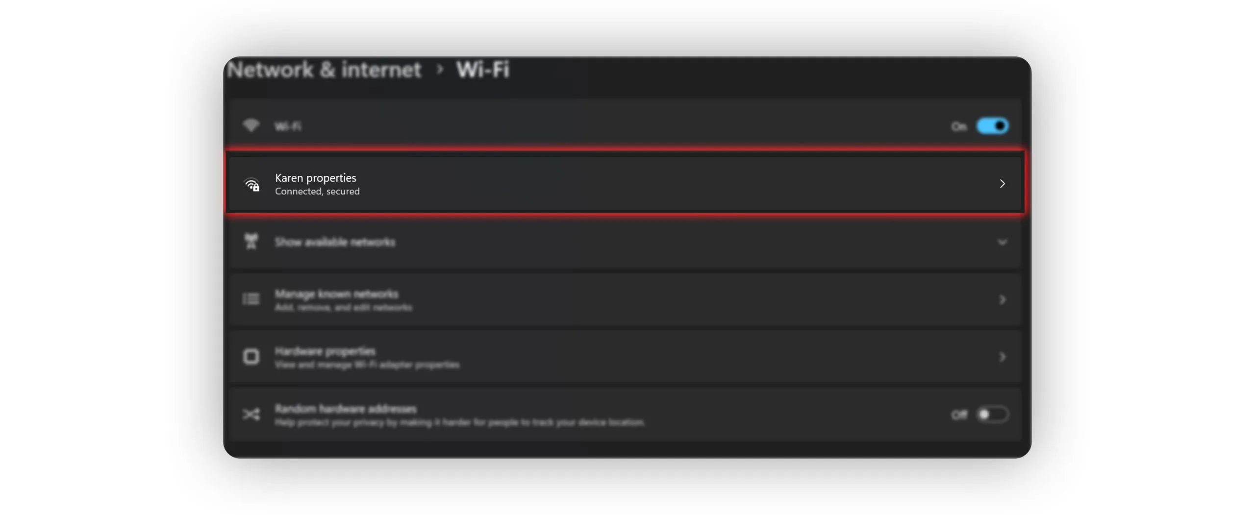 - در بخش Wi-Fi روی شبکهای که به آن متصل نیستید کلیک کرده و گزینه Properties را انتخاب کنید.