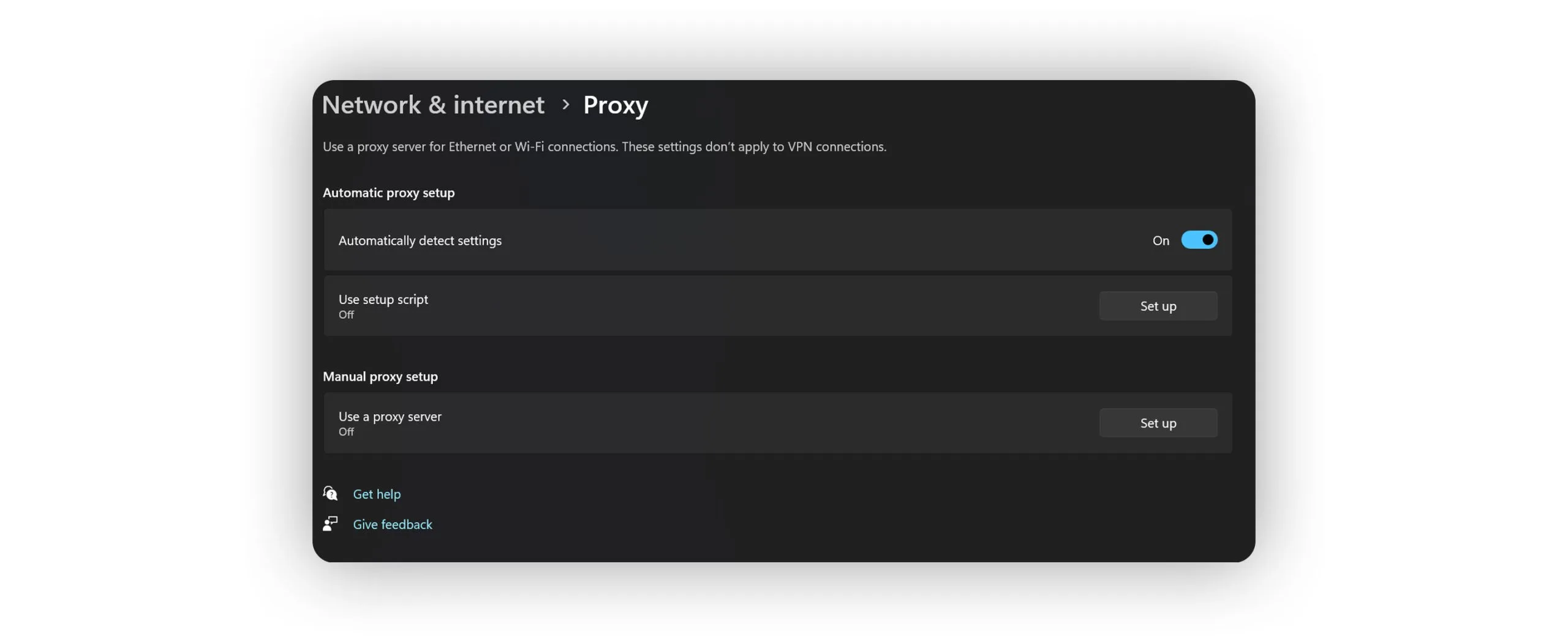 - در Settings > Network & Internet > Proxy، مطمئن شوید که گزینه Use a proxy server غیرفعال است.