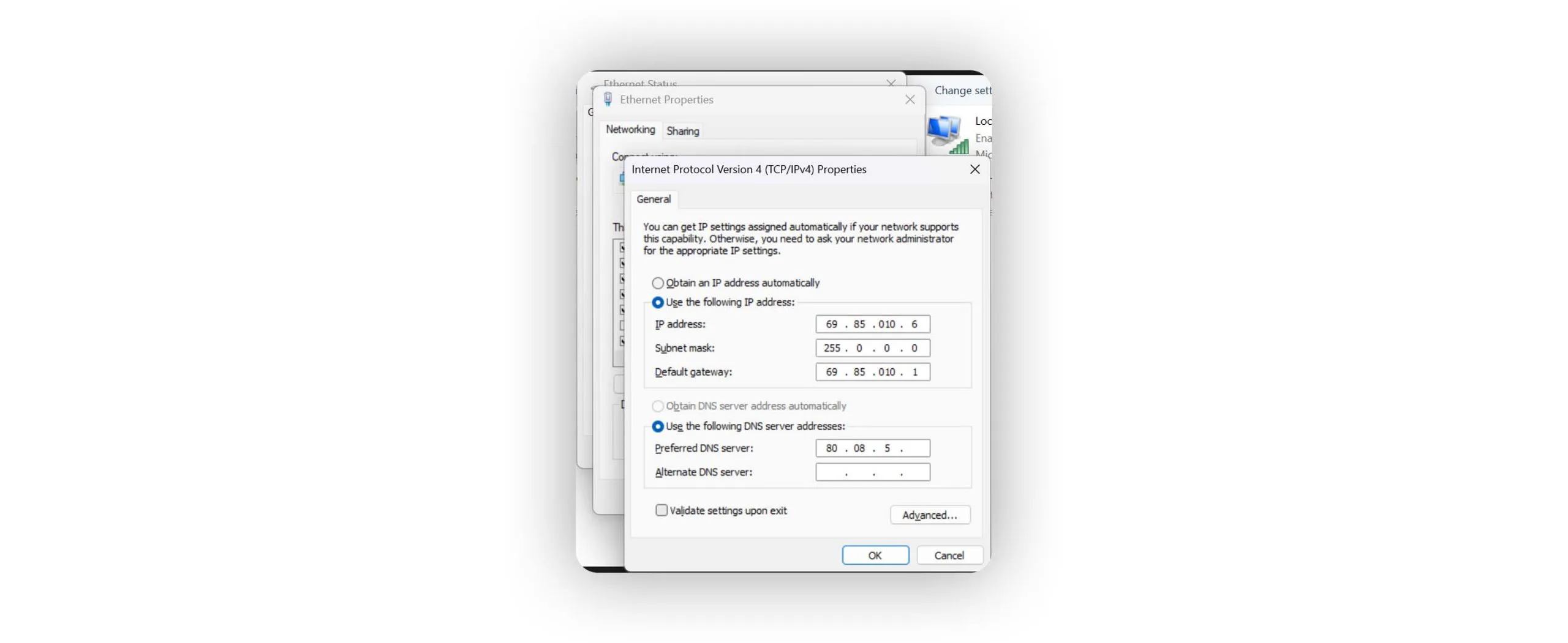 - بررسی تنظیمات IP و DNS: