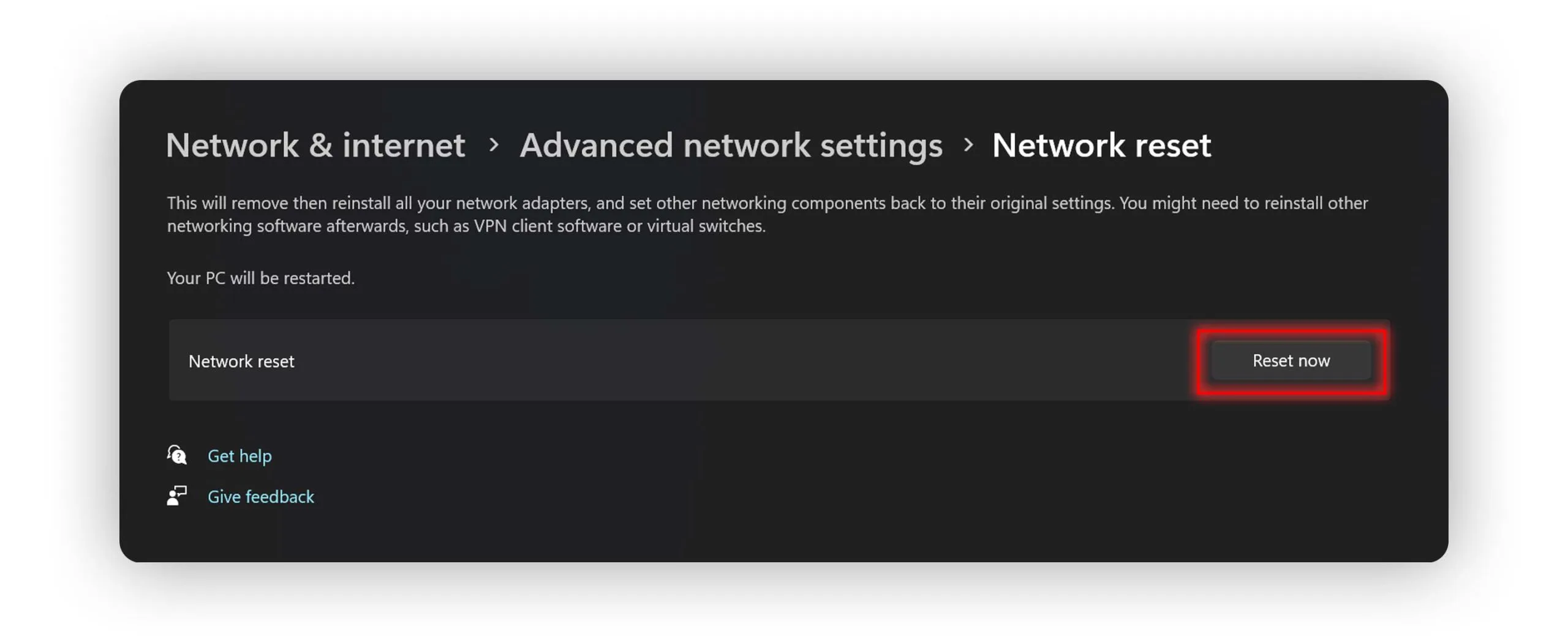 - این فرآیند تمامی تنظیمات شبکه را به حالت پیشفرض بازمیگرداند. پس از ریست، سیستم خود را ریاستارت کرده و دوباره شبکه وای فای را بررسی کنید.