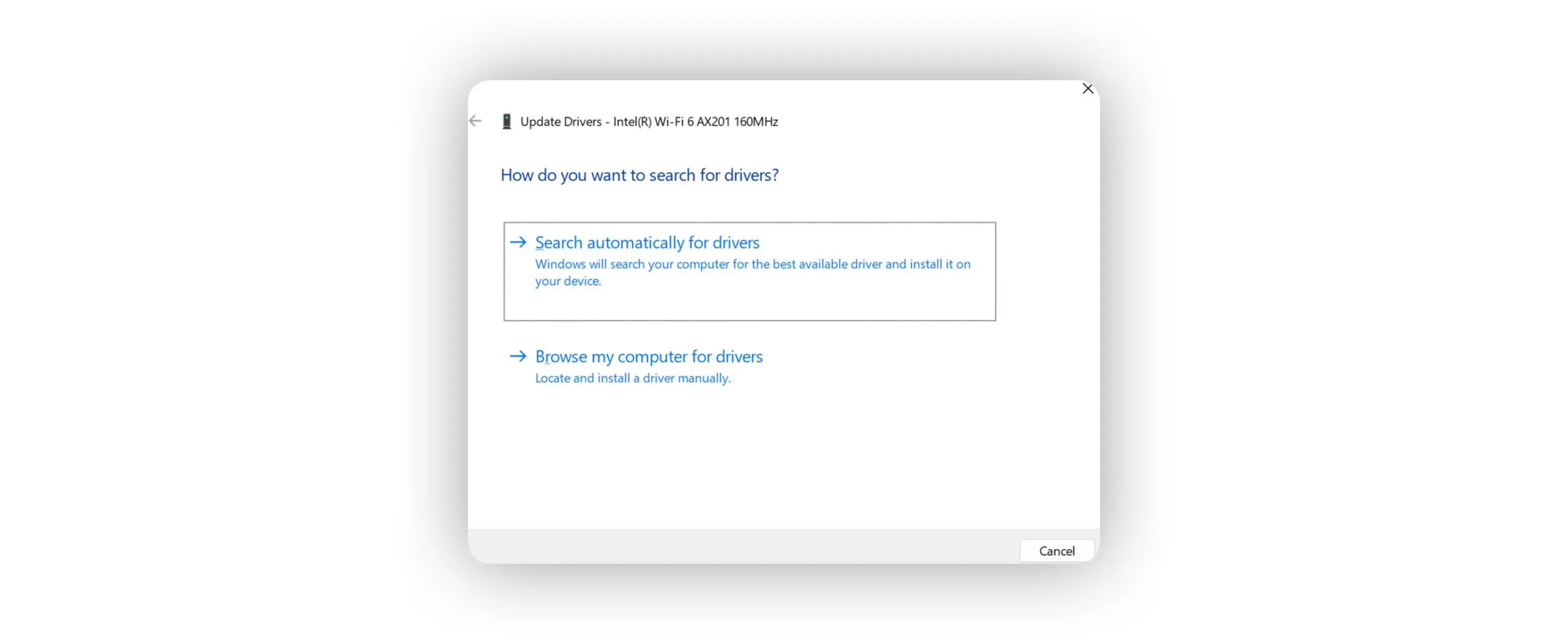 - در صورتی که مشکل برطرف نشد، درایور وای فای را با انتخاب Update driver بهروزرسانی کنید.