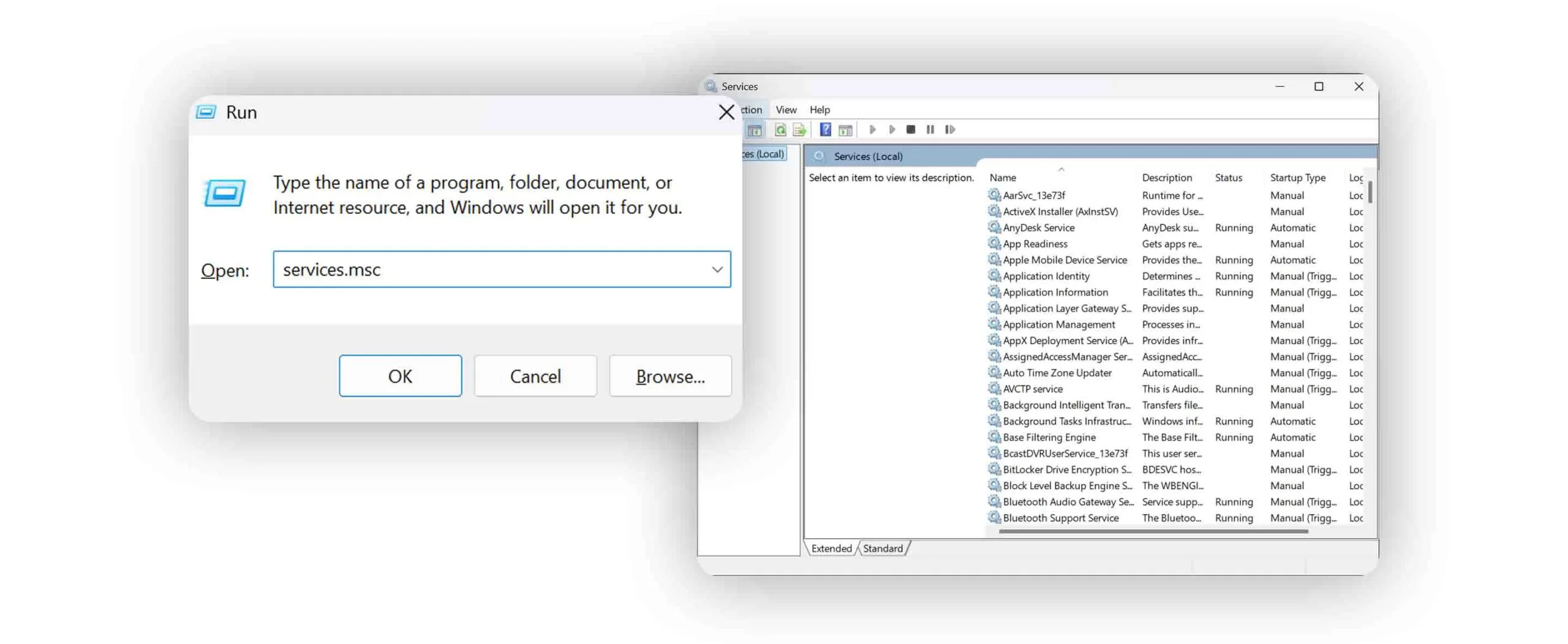services.mscرا تایپ کنید.